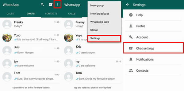 So if you also talk to Whitspap, you should back up your Whipspace. Once backed up, you can regain your chatting anytime from any mobile computer or laptop. You also need only one email address for that too. To back up WhatsApp, first you have to open your whipspace and go to the settings by clicking on the three points above it's right side.
