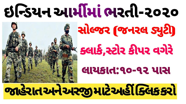 Indian Army has published an Advertisement for Soldier (General Duty) Soldier Technical, Soldier Technical Nursing Assistant (AMC) / Nursing Assistant Veterinary Soldier Clerk/Store Keeper Technical/ Inventory Management. Other details like age limit, educational qualification, selection process, application fee and how to apply are given below.